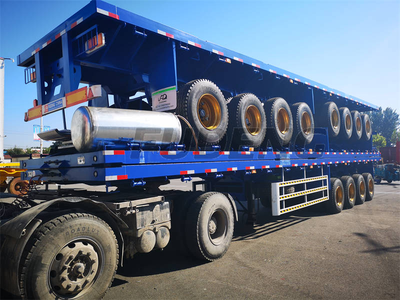 FUDENG manufactures high quality 4 axle flatbed 45 ft trailers that can carry 40ft containers, 20ft containers and bulk cargo. The 4 axle 45ft flatbed trailer…