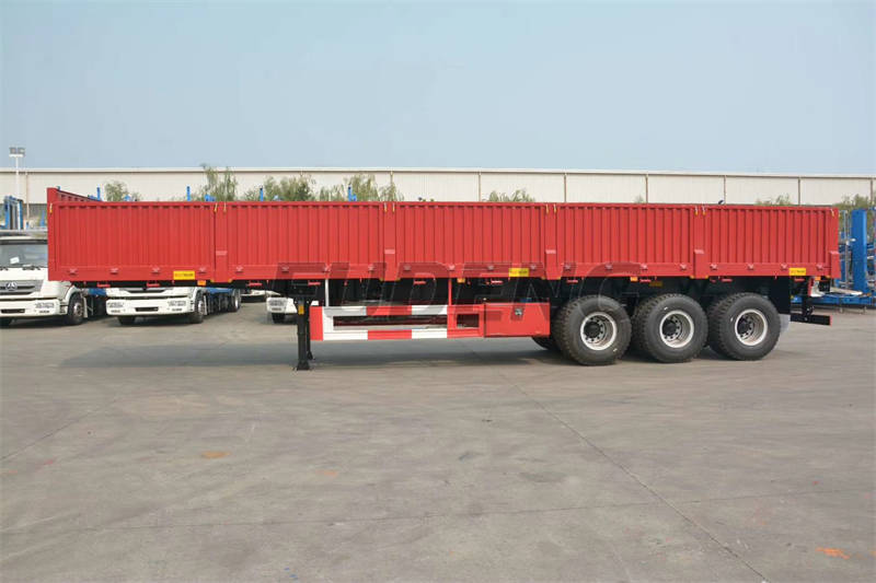 The three-axle drop side trailers for sale are manufactured with the highest quality raw materials and the latest production technology to ensure its strength. The structure consists of one-piece high-quality steel main beams, solid floors with sidewall frames, etc. Whether you are loading cement, steel, any building materials, etc.