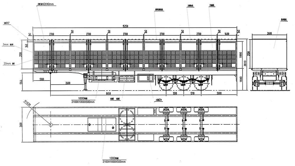 The side wall trailer is widely used and is suitable for the transportation of medium and heavy goods and various bulk goods. The side wall trailer is composed of a cargo platform and detachable fences around it, which can be removed during work to facilitate loading and unloading of goods. The standard dimensions of the side wall trailer is: