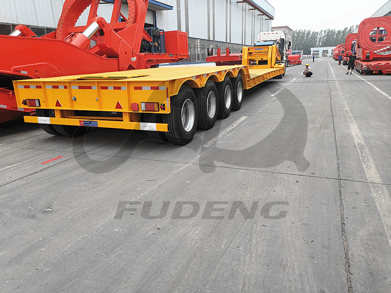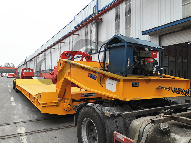 Our 120tons removable gooseneck lowbed trailer ready shipping to Africa Port, we design 4pcs heavy axles depend on our customer transport demand. The power station by 12KW JAC brand diesel engine, and total 19.5m length lowbed trailer. Removable gooseneck trailer will be more and more popular in Africa, it’s very easy to load mechainery equipment than normal lowbed trailer with rear ladder, such as excavator, truck crane, crawler crane, wheel loader, motor grader, bulldozer, roller and forklifts.