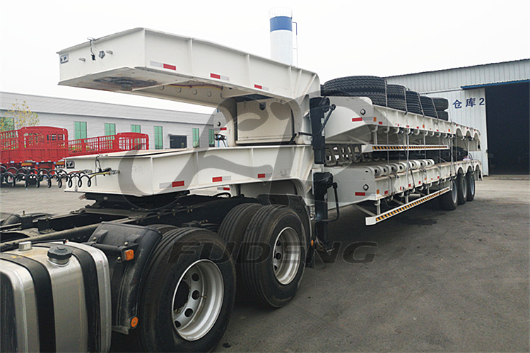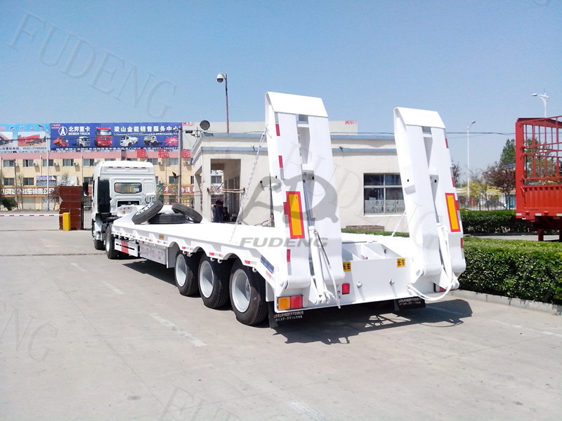 3/4 axles lowboy semi trailers with hydraulic rear ladder.