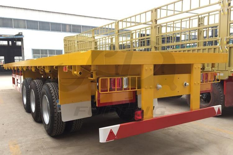 Fudeng 3 Axle 40-60 Tons flatbed semi trailer with 12R22.5 tires is the most popular trailer for transporting containers, 20ft or 40ft. We have exported many to all the world for working very well. Welcome you inquiry very soon.