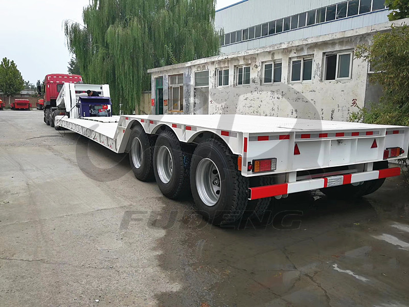 The low bed semi trailer for sale need to confirm carefully with client about truck head fifth wheel height before production because we FUDENG control every step for customer very detailed. The low bed trailer for sale construction with advanced automatic welding machine equipment and do inspection for every step during the production to control the quality. FUDENG heavy load excavator low bed semi trailer for sale can provide clients longer service life to avoid not needed maintenance to save owners business running cost make the low bed trailer for sale more high cost performance.
