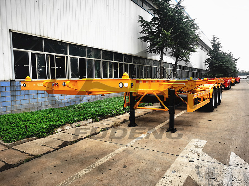 The container chassis is specially used for the transportation of 20ft 40ft containers and can be used repeatedly for a long time. The container chassis has the characteristics of low bearing surface, light weight, high reliability, strong applicability, etc, greatly improve the safety of road transportation.