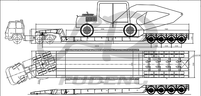 The hydraulic folding gooseneck trailer can transport excavator, truck crane, crawler crane, wheel loader, motor grader, bulldozer, roller and forklifts. We will confirm trailer drawing with you before begining our production, we are professional team who provide you high quality semi trailer.